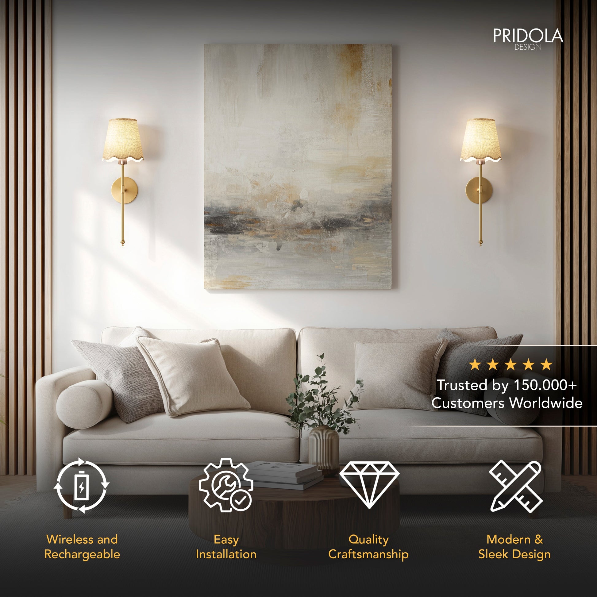 "Los puse en el dormitorio sin taladrar nada:adhesivo 3My listo en 10 minutos. Con elmandocambio del blanco cálido al frío según lo necesito y lamemoriarecuerda el último ajuste. El acabadoblanco con doradoqueda finísimo, parece hotel."
